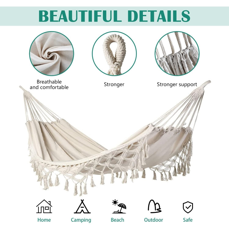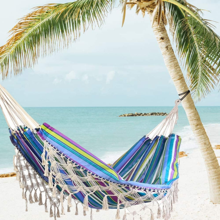 Outdoor Camping Hammock Tassel Polyester Cloth Hammock(3 Blue Striped Tassel)